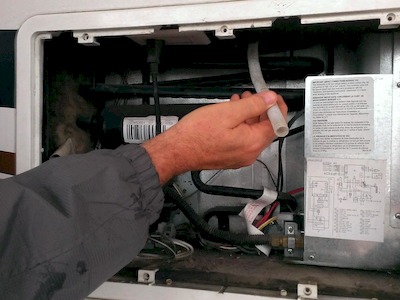 Шаг 2: Доступ к капиллярной трубке — Снимите заднюю панель холодильника, чтобы получить доступ к компрессору и капиллярной трубке. С помощью отвертки аккуратно открутите винты и отложите панель в сторону.
